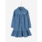 This denim shirt-dress has been updated with a frill on the skirt. Practical and elegant, it is a must-have in girls’ wardrobes. They’re going to love the embroideries with iridescent hearts and making the frill twirl!